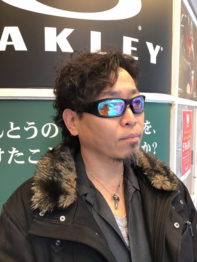 レンズカラーは、紫外線で色の濃さが変わるナチュラルグレーの調光レンズ・スカイクリアに、ブルーミラーコートを選ばれました。