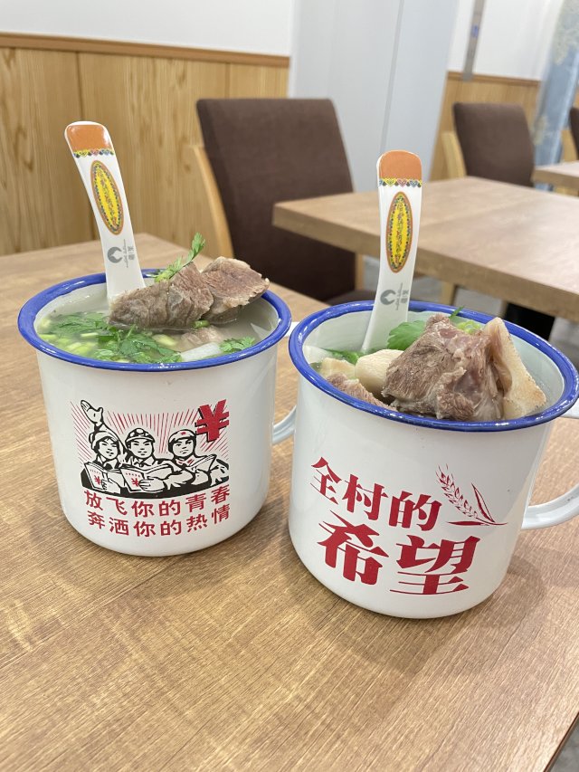 写真だとわかり難いのですが、このホーローカップがけっこう大きくて、その中に骨つき羊肉のぶつ切りがゴロゴロ入っています。食べ応えのあるスープで美味しかったです。