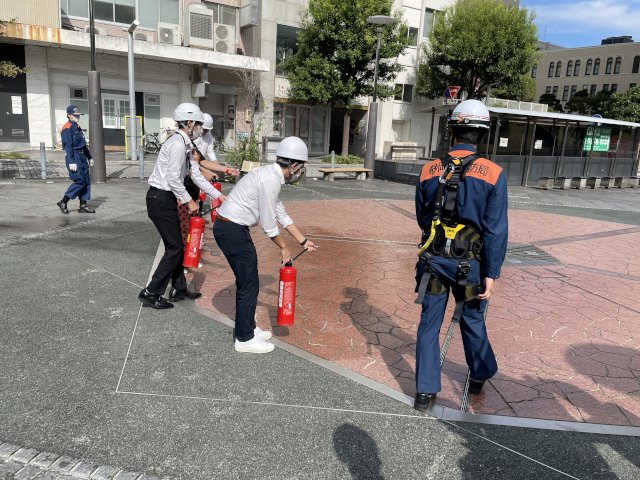 例年はAEDの使用方法の説明があるのですが、今年は消火器の使用説明が行われました。