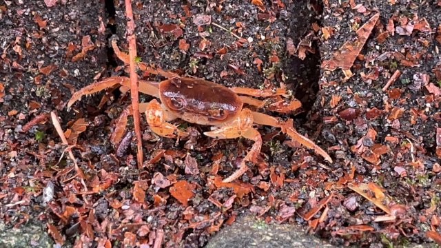 紅葉山庭園の竹垣にサワガニがいました。