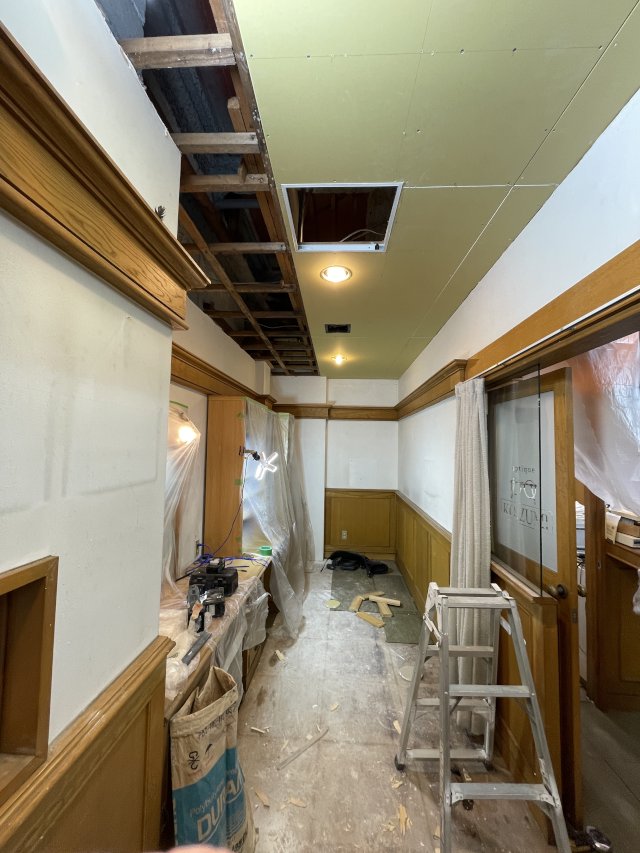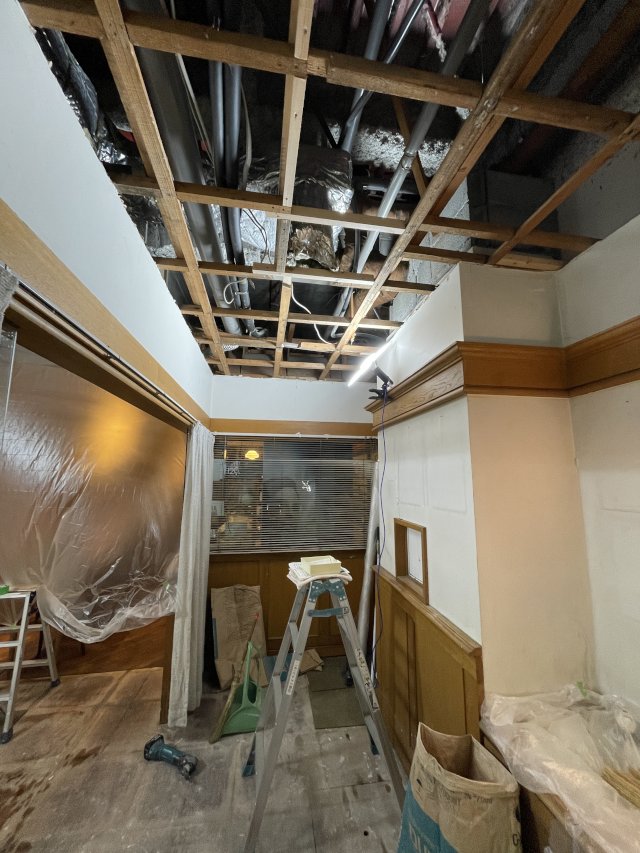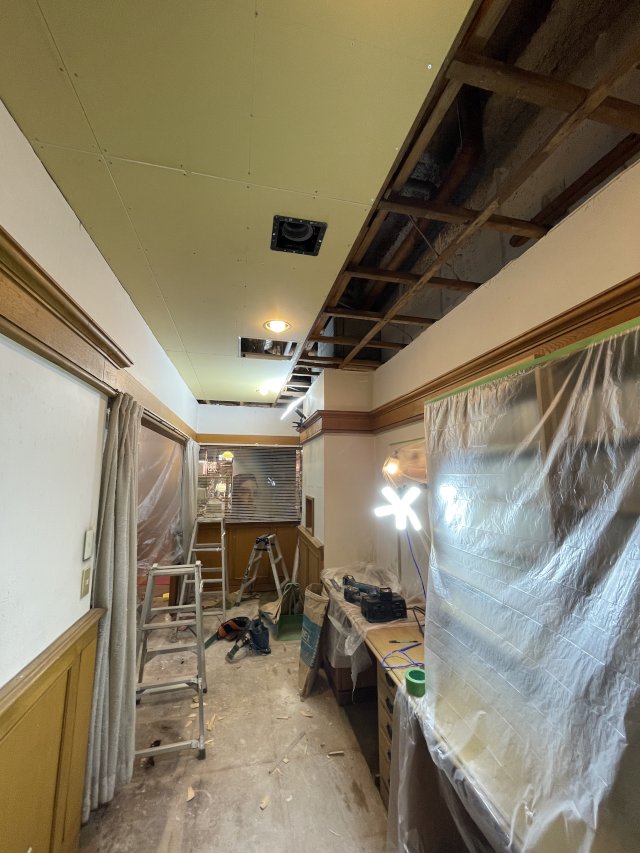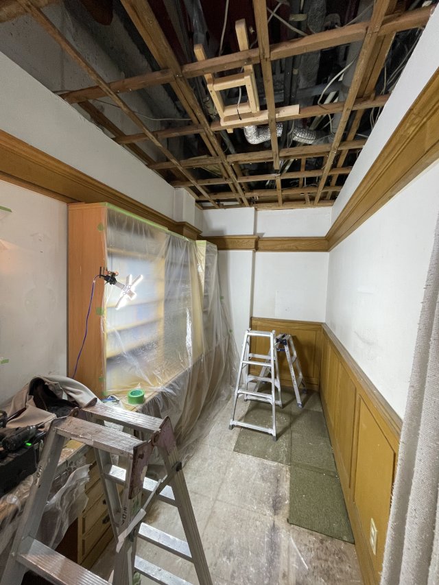 天井と床の張り替え工事が始まりました。